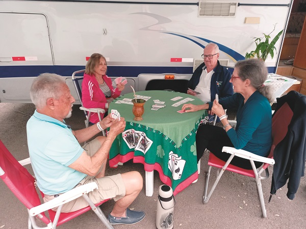 Na tarde de quinta-feira, 28, o grupo aproveitou a tarde nublada e chuvosa para treinar o carteado, pois neste fim de semana participam do torneio de canastra. Por fazerem parte da Associação Gaúcha de Proprietários de Veículos de Recreação, praticamente todos os meses pegam a estrada em seus motorhomes.