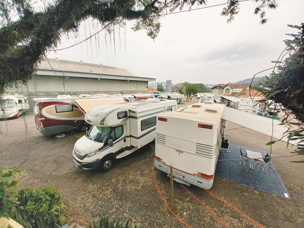 Motorhomes e vans lotam as dependências do Parque da Oktoberfest desde terça-feira