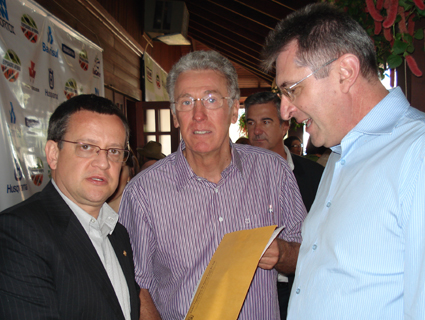 Beto Albuquerque recebendo documento do vereador Hildo Ney Caspary