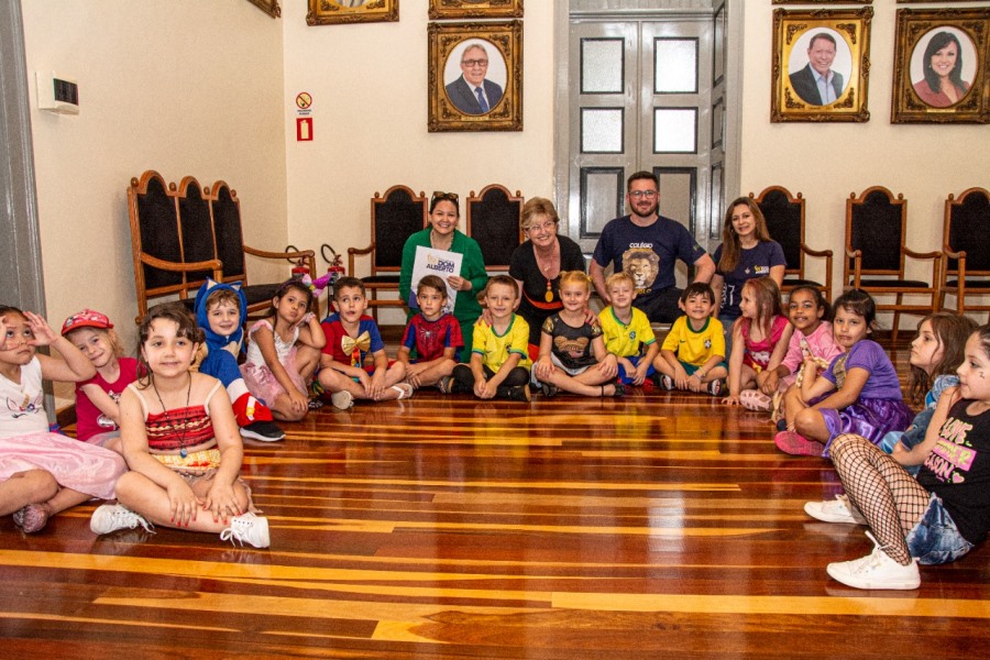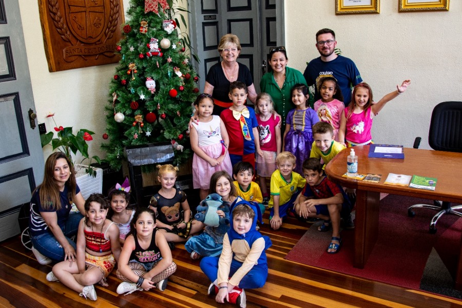 Na atribulada agenda de dezembro, a prefeita Helena Hermany abriu espaço para um momento descontraído na manhã desta sexta-feira, dia 9. A turminha de pitocos da educação infantil do Colégio Dom Alberto foi recebida no Palacinho, em uma audiência para tratar de demandas da comunidade. Em uma roda de conversa no salão nobre, eles não se intimidaram e muito à vontade puseram-se a dialogar com a chefe do Executivo.