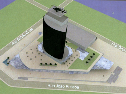 Projeto da fachada do Centro de Eventos no quarteirão entre as ruas Galvão Costa, João Pessoa e Tenente Coronel Brito