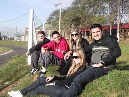 Christofer, Cassio Luz e Diego Siqueira com as manas Simone e Bruna Frohlich