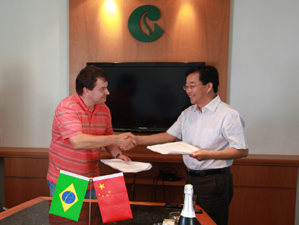 Da esquerda para a direita, Alexandre Strohschoen, diretor Regional América do Sul da Alliance One, e Deqing Liang, presidente da China Tabaco Internacional do Brasil