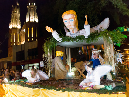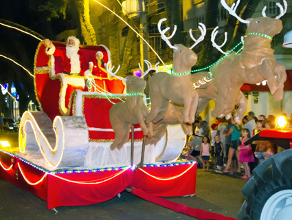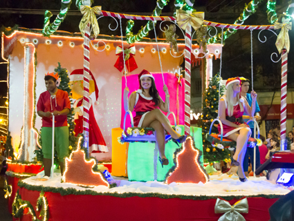 Crianças, escolas convidadas e carros alegóricos encheram de luz e magia o desfile, que teve três carros alegóricos. O primeiro resgatou o presépio, trazendo Maria, José e o menino Jesus. Já o segundo foi a casa dos presentes, trazendo a Mamãe Noela e os duendes.