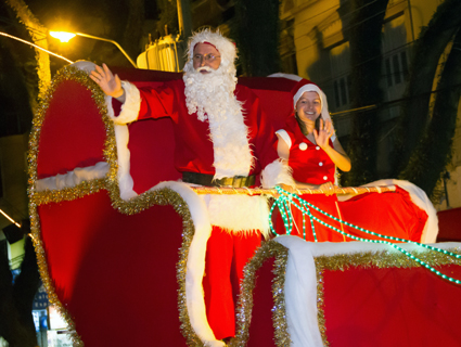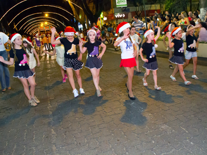O trenó não poderia faltar, trazendo consigo o Papai Noel e as noelitas, distribuindo balas, sorrisos e acenos. Diversão para todas as crianças que estavam prestigiando o desfile. Para completar a noite, escolas realizaram apresentações artísticas entre as alegorias.