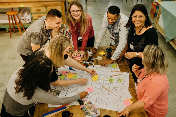 Os processos de cocriação da Mercur iniciaram após a primeira virada de chave da organização, em 2008. Eles consistem em um trabalho interdisciplinar para se pensar a concepção, prototipagem, melhoria e desenvolvimento dos diversos produtos da área de saúde e educação da empresa. “Essa metodologia coloca as pessoas no centro do processo, por meio dela a gente consegue desenvolver itens que fazem sentido para as pessoas e suas necessidades. O resultado é um produto que conta a história de muitas pessoas, de cada profissional e de cada paciente”, afirma Cristina Fank, terapeuta Ocupacional que atua na área de Inovação da Mercur.