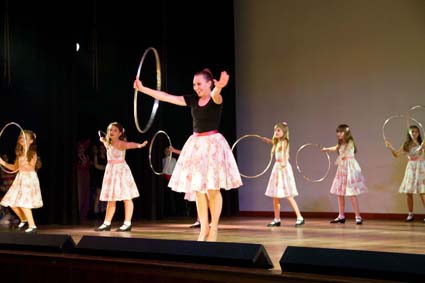 A aluna Ana Carolina com as meninas dos 3ºs e 4ºs anos apresentaram a dança da novela Bambolê