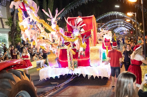 Entre os destaques estão os desfiles pela Rua Marechal Floriano: serão três desfiles noturnos realizados pela Assemp e Prefeitura Municipal, sempre às 20h, com seis carros alegóricos e 150 componentes. Também terá um desfile promovido pela Lojas Havan e um pela Coca-Cola. “Isso representa uma retomada à normalidade, estamos muito otimistas em relação ao público e estamos preparando um evento muito legal”, frisou Kaminski. Dois dindinhos da alegria também circularão pela cidade durante o evento.