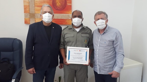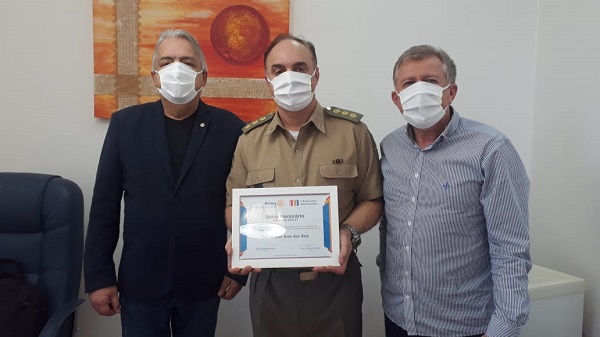Nessa quarta-feira, 26, na Sede do Comando Regional de Polícia Ostensiva do Vale do Rio Pardo, em Santa Cruz do Sul, o Comandante Regional, coronel Valmir José dos Reis e o Chefe do Estado Maior, tenente-coronel Paulo Fernando Soares do Nascimento receberam a Comenda de Sócios Honorários do Rotary Club de Santa Cruz do Sul, em reconhecimento aos relevantes serviços prestados para o engrandecimento dos objetivos rotários. As moções foram entregues pelo Presidente e pelo Governador do Rotary, Sr. Paulo Adalberto Tavares e Tabajara Andrade.