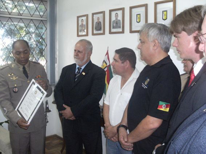 Uma comitiva do Rotary Club Santa Cruz do Sul – distrito 4680 esteve em Cachoeira do Sul para prestigiar a posso do companheiro Paulo Fernando Soares de Nascimento como novo comandante do 35o. Batalhão da Brigada Militar.