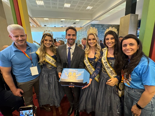 Na ABAV Expo, a Festa da Alegria está representada pelas soberanas – Rainha Tatiane Caroline Voese D’Avila e as princesas, Nathalia Konzen da Silva e Karoline Ribeiro Klaus – , pelo presidente da Associação de Entidades Empresariais de Santa Cruz do Sul (Assemp), Ricardo Bartz, pela gestora de Projetos Culturais e Eventos da Assemp, Mariana Cunha, e pela assessora da imprensa, Ana Cristina dos Santos. “Participar de um evento do porte da Abav Expo coloca a Oktoberfest Santa Cruz no cenário nacional de turismo. Buscamos nos aproximar dos grandes operadores para que nos próximos anos possamos ampliar a participação de visitantes de todo o país, pois temos convicção de que a nossa festa tem estrutura e atrativos para atrair este público”, destacou Bartz.