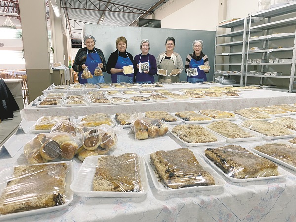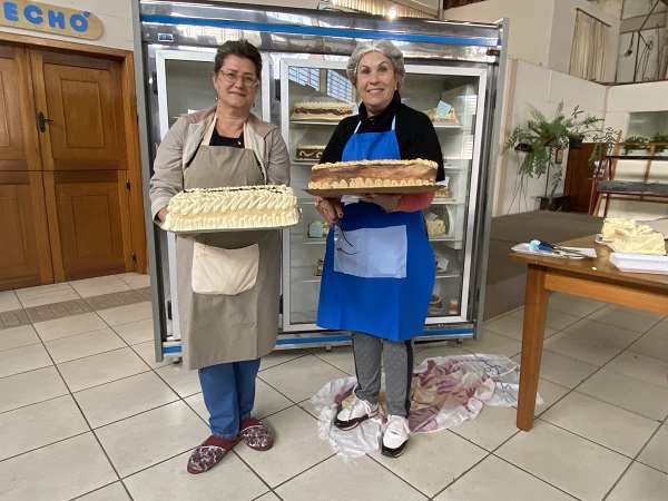 Especialista em tortas artísticas, Lúcia Seolin Ghidini era uma das envolvidas na produção e venda dos artigos. Ela preparou 16 tortas. “Fiz sete Marta Rocha e mais algumas com sabores como abacaxi, ameixa, entre outras, que têm uma saída enorme. Uma das tortas vai para sorteio, outra vai para a roda da sorte e outra para vender os números da torta. Todas os produtos que estão aqui são muito saborosos e outros lugares teriam o dobro dos valores que vendemos aqui na comunidade. A gente faz para o pessoal vir aqui comprar mesmo”, explicou a professora de culinária.