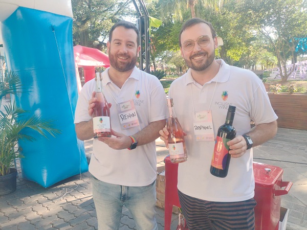 Uma das empresas presentes à 2ª Feira da Diversidade foi a Inclusive Wine, de Porto Alegre. Propriedade do casal Raphael Giuriatto e Renan Perovano, ela comercializa vinhos e espumantes. Eles tomaram conhecimento do evento, inscreveram-se para participar buscando dar visibilidade à marca e foram selecionados.
