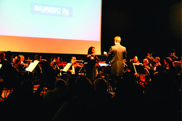 Para marcar a passagem dos 25 anos da Universidade de Santa Cruz do Sul (Unisc), duas atrações ocorreram na noite desta quarta-feira, 4 de julho, no Auditório Central da instituição. A primeira foi o Concerto Sinfônico realizado pela Orquestra de Câmara Unisc, composta por 14 integrantes. Sob a regência do maestro Leandro Schaefer e com a participação de mais 29 músicos convidados, o grupo apresentou obras de Gluck, Mozart e Beethoven.