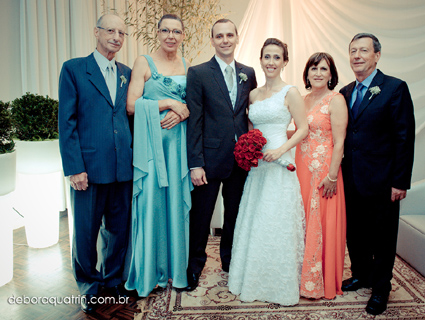 Os pais, Rosa e Selmo Bielscki e Nilda Terezinha e Enar Adão de Lara, estavam radiantes com o casamento dos filhos, Fernanda Bielski e Carlos Eduardo de Lara. A cerimônia religiosa foi realizada no dia 17 de novembro, na Catedral São João Batista, e a recepção ocorreu na Associação Atlética Banco do Brasil – AABB. Conduzida de modo impecável pela Promopres Promoções & Eventos, a recepção transcorreu em clima de glamour e alegria. Fechando a celebração, os recém-casados seguiram para Europa. Fernanda e Carlos Eduardo foram muito carinhosos com seus convidados, deram de lembrança uma muda de “Amor Perfeito de Verão”, plantado por eles mesmos.
