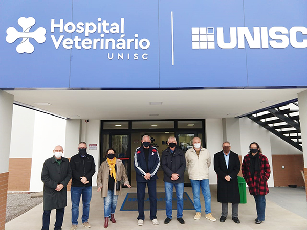 O Hospital Veterinário da Unisc recebeu na terça-feira, 1º de setembro, a visita do Conselho Superior da Associação Pró-Ensino em Santa Cruz do Sul (Apesc). Na oportunidade, o grupo conheceu as dependências do complexo de saúde implantado em parceria com a Prefeitura Municipal de Santa Cruz do Sul e inaugurado no mês de agosto, em Linha Pinheiral. A presidente da Apesc e reitora da Unisc, professora Carmen Lúcia de Lima Helfer, que acompanhou o grupo, juntamente com o vice-presidente da Associação, Jacob Braun, disse que o objetivo da visita foi proporcionar aos conselheiros a oportunidade de conhecerem a infraestrutura do complexo de saúde, algo que não foi possível durante a inauguração, devido às restrições impostas pela legislação por causa da pandemia. “Como o Conselho se constitui de sete pessoas, foi possível nos organizarmos em grupos menores para conhecermos o nosso hospital veterinário que foi inaugurado recentemente graças a um grande esforço conjunto”, salientou