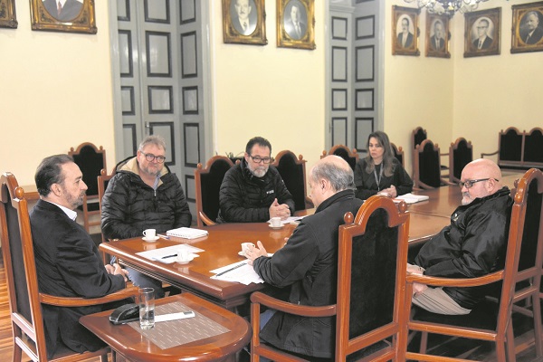 O prefeito de Santa Cruz do Sul, Sérgio Moraes (PL), reuniu-se com o secretário municipal da Fazenda, Bruno Faller, o subsecretário Eloi Brandt e os auditores fiscais da Receita Municipal, Silvano Fernandes e Antônio Gonçalves, para uma avaliação sobre as contas públicas. O encontro teve como foco principal os impactos da reforma tributária federal e a busca por soluções diante do grave déficit orçamentário enfrentado pelo município em 2025.