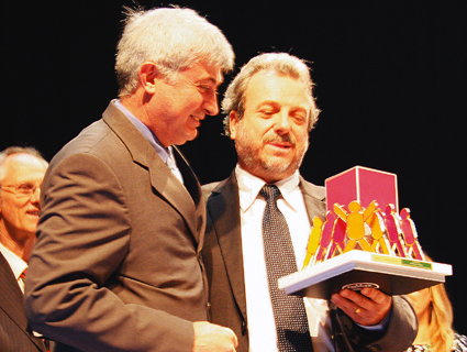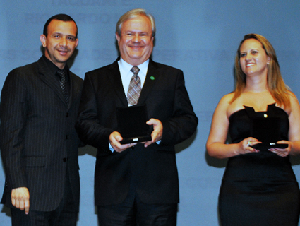 Diretor de Desenvolvimento da Cooperativa, Neori Gusson (à esquerda), recebe o reconhecimento Cooperativa do Ano
