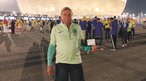 Assistir à Copa do Mundo Catar 2022 com a família e os amigos em frente aos telões ou nos bares e demais espaços espalhados por todo o Brasil onde a energia verde e amarela toma conta em dias de jogo já tem sido um momento de alegria e diversão para muitos brasileiros. Agora poder acompanhar a Seleção brasileira bem de perto, mais precisamente nas arquibancadas dos estádios do Catar, certamente é uma sensação única e inesquecível. Melhor ainda se a viagem até às arábias tenha sido um presente muito especial, como é o caso do santa-cruzense Ivo José Walter, que foi assistir ao Mundial com tudo pago, graças à campanha de vendas de uma empresa que fornece baterias para sua loja.