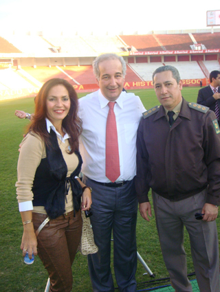 Secretária municipal de Governo, Marla Hansen ao lado do presidente do Inter, Giovanni Luigi e do Coronel Henrique Vanderlei Lampert Silva