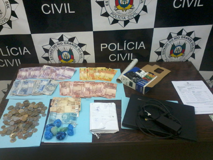 Mais de R$ 1400,00 foram apreendidos, além de 269 pedras de crack e uma câmera e um notebook furtados