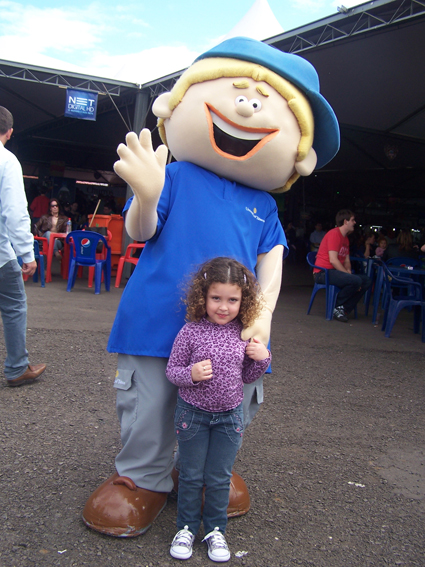 Maisa Gabrieli de Barros Heiderich com o mascote Universito, da Universal Leaf Tabacos