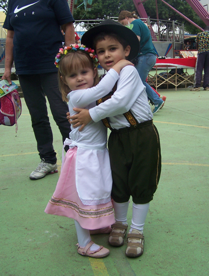 Com roupas típicas: Leonardo e Luis Felipe Voigt