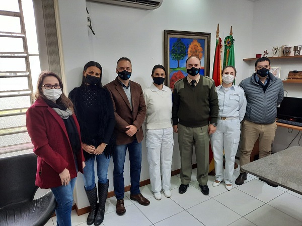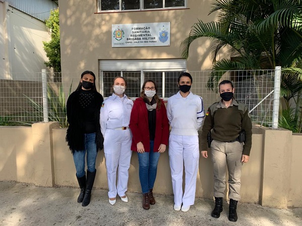 Na manhã de sexta-feira, 6, em Santa Cruz do Sul, com o objetivo de anunciar o início do atendimento psicológico aos policiais militares da região, o Comandante Regional, coronel Valmir José dos Reis, o Chefe do Estado-maior do CRPO/VRP, tenente-coronel Giovani Paim Moresco e o chefe da 1ª Seção do CRPO/VRP, major Fabricio Broll Zago, reuniram-se com a chefe da Seção Biopsicossocial do Hospital da Brigada Militar (HBM), major médica Denise Alves Riambau Gomes, a Chefe da Formação Sanitária Regimental (FSR) do CRPO/VRP, capitã médica Marília Ertel Vitola, e psicólogas, Michele Saldanha, da Seção Biopsicossocial de Porto Alegre e Elise Júlia Sehn, designada para trabalhar em Santa Cruz do Sul.
