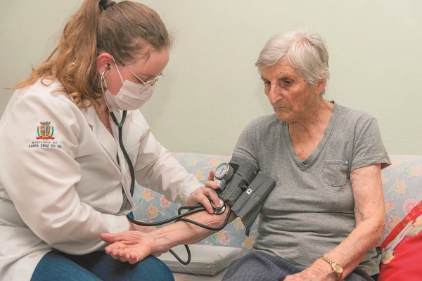 Aos 93 anos, a aposentada Almeri Alves de Borba aguarda a chegada da médica em sua casa , acomodada no sofá da sala em uma tarde de quinta-feira. Com dificuldade para se locomover, ela não tem condições de ir até a unidade de saúde mais próxima para as consultas periódicas. “É muito bom para nós que a doutora venha até aqui. Minha mãe tem dificuldade para caminhar, seria muito complicado levar ela até o posto, é muito difícil para ela”, conta a filha, Beatriz.