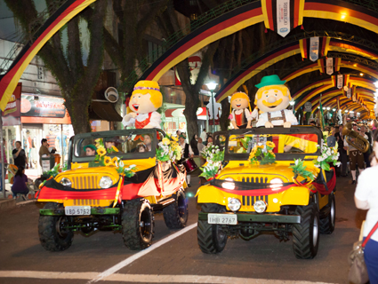 O cortejo iniciou na Praça Getúlio Vargas, seguiu pela rua Marechal Floriano e Galvão Costa até a frente do Parque da Oktoberfest, e contou com a presença de autoridades, diretores, voluntários e comunidade, acompanhados por bandinhas típicas alemãs.Arainha da 29ª Oktoberfest, Gabriela Rossa, e suas princesas Carolina Appel e Maria Helena Lersch, bem como da família de bonecos, Fritz, Frida, Max e Milli também estiveram presentes.