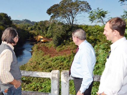 A limpeza do arroio inclui também as encostas, para abrir o canal de passagem da água e, também a interligação entre as duas pontes sobre a RS 409, o que vai permitir o aumento da área para vazão das águas.