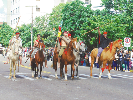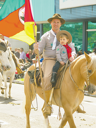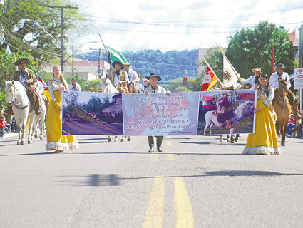 O desfile farroupilha, realizado na manhã da quinta-feira, 20 de setembro, contou com a presença de autoridades, cavaleiros e entidades. Ao pé, em caminhões ou mesmo no lombo do cavalo, os tradicionalistas renderam homenagens ao Rio Grande do Sul que, há 177 anos, iniciavam uma revolução.
