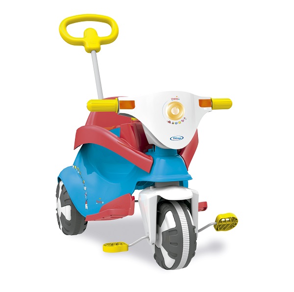 O triciclo Happy Red 3 em 1 traz a sua multifuncionalidade como diferencial.Com design moderno, confortável e cores expressivas. Adapta sua estrutura de acordo com a necessidade. Para as crianças de 1 ano para uma maior segurança na hora de levar para o passeio é só colocar o cercado de proteção. Tem também a possibilidade de apoiarem os pés no apoio de pés que assim como o cercado, também é removível. Para as crianças que ainda não sabem pedalar e que vão precisar do empurrãozinho da mamãe. Com o empurrador do triciclo que pode ser removido assim que a crianças aprender a pedalar. E se as crianças e as mamães quiserem transportar mamadeiras e garrafas tem suporte para elas, assim como um painel interativo. Indicado para crianças a partir dos 12 meses, o triciclo acompanha o desenvolvimento da criança.