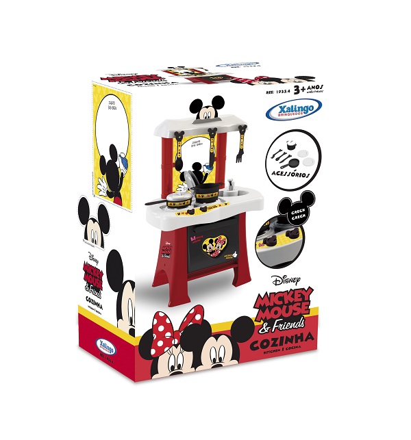 A Cozinha Mickey é composta de um design diferenciado. Os adesivos completam o visual e enriquecem a brincadeira. Os acessórios são personalizados, estimulando a imaginação e auxiliando as crianças no seu desenvolvimento. Com som creck-creck, o produto faz parte da linha faz de conta, contribuindo para o desenvolvimento de atitudes positivas e representação do cotidiano. Indicado para crianças acima dos 3 anos.