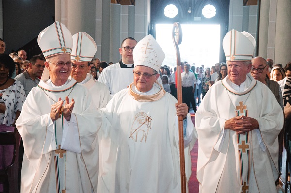 A Santa Missa com rito de Ordenação e Posse, que teve início às 15h, foi presidida pelo Arcebispo de Santa Maria e presidente do Regional Sul 3, Dom Leomar Brustolin. Os coordenantes foram Dom Aloísio Alberto Dilli OFM, Bispo Emérito de Santa Cruz do Sul (2016-2024), e Dom Guilherme Antônio Werlang MSF, Bispo Diocesano de Lages (SC).