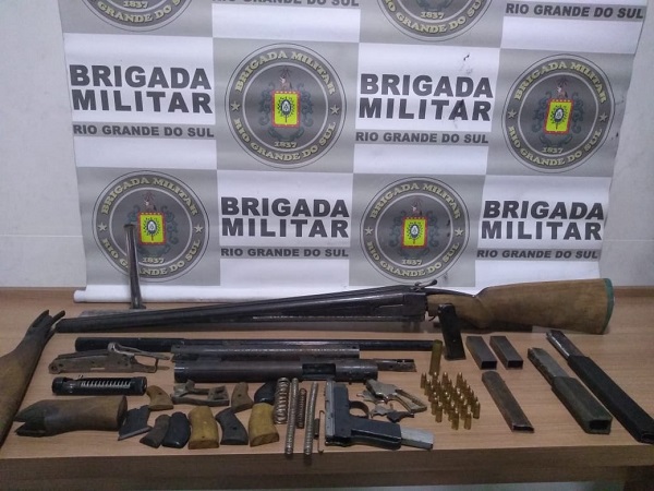 Nas buscas realizadas no interior da oficina, os policias visualizaram um outro indivíduo manipulando carregadores de pistola calibre 9mm. Também foram localizadas munições calibre 9mm, uma espingarda de dois canos, armas artesanais e diversas peças de armamento. Os dois homens, de 25 e 41 anos, foram presos diante dos fatos. Os materiais apreendidos foram encaminhados à Delegacia de Polícia.