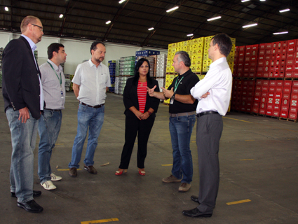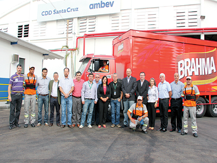 A prefeita Kelly, o vice Campis, secretários, pessoal da Assemp e Oktoberfest, posaram para a foto com a direção e funcionários da Ambev no novo CDD Santa Cruz do Sul