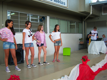Mostrando tudo isso, os estudantes da 5ª e 6ª série desfilaram com os uniformes, roupas preferidas, camisetas confeccionadas com garrafas pet, peças que customizaram em sala de aula, além de criarem depoimentos criativos das suas roupas mais preferidas.