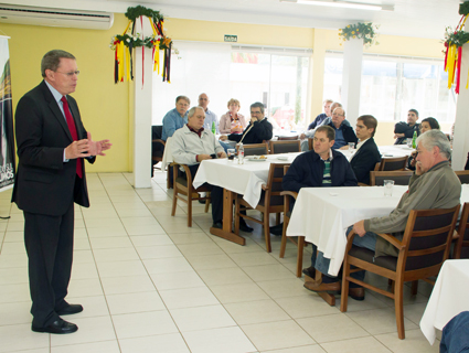 • Telmo Kirst: prometeu implantar o PGQP na administração e se mostrou favorável a criação de um Conselhão para discutir as ações do Executivo e também à implantação de um novo DI, pedindo ajuda à Ascnor para escolha de áreas adequadas. Concordou com a indicação do secretário de Desenvolvimento Econômico pela Assemp, mas se reservou o poder do veto. Acenou para engordar o atual orçamento de 2% para a Agricultura e disse que vai trabalhar para a permuta com o estado para a construção do Centro de Eventos, porem este deve continuar abrigando órgãos do Estado, ou estes devem ser remanejados para um único local. Mas a mudança maior sinalizada foi colocar o Esporte não como Secretaria, mas como parte integrante do gabinete do prefeito, instituindo uma Fundação para geri-lo. Prometeu ainda revitalizar o Morro da Cruz.