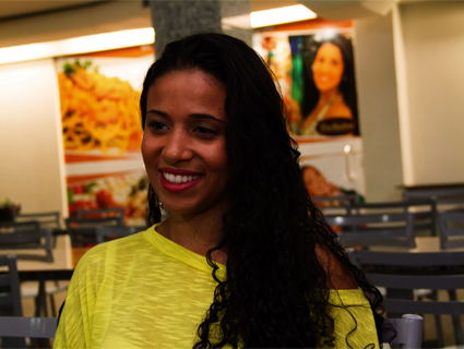 E por falar em cabelo, a cabeleira da moça não passa despercebida. Os longos cachos negros emolduram o rosto delicado da capricorniana de traços finos, que se diz surpresa por ter sido eleita a Rainha da Corte. “Havia concorrentes fortes, não pensei que seria a escolhida”, manifesta.