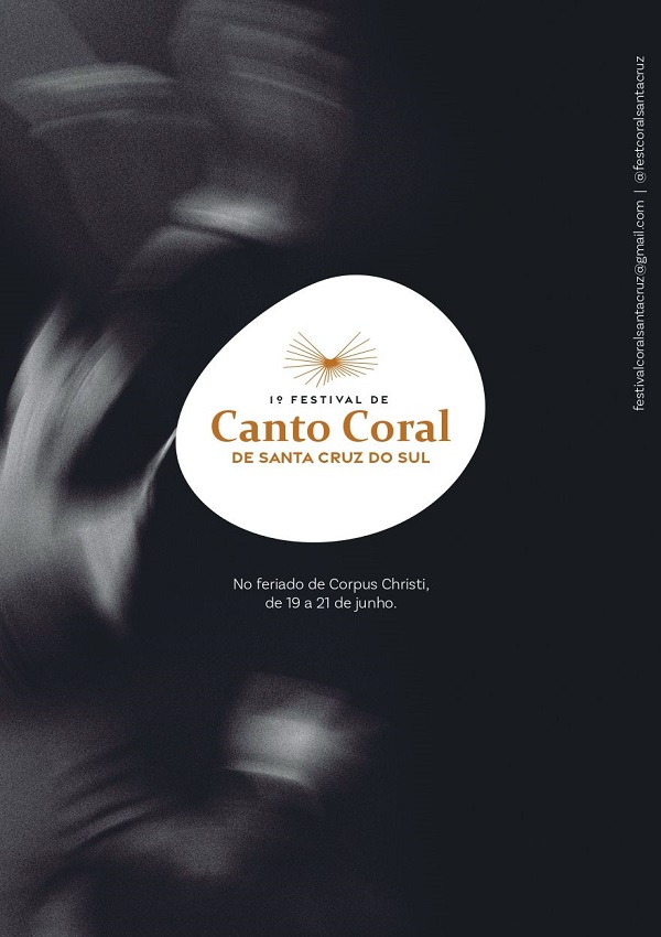 Vem aí a primeira edição do Festival de Canto Coral de Santa Cruz do Sul, iniciativa que promete encantar o público e fortalecer ainda mais a arte no município. Como forma de dar visibilidade aos artistas da região e proporcionar um momento de integração com grupos e professores de todo o país, o evento acontecerá durante o feriado de Corpus Christi, nos dias 19, 20 e 21 de junho, com amparo da Lei Aldir Blanc e apoio da Secretaria Municipal de Cultura, do Colégio Marista São Luís e da Universidade de Santa Cruz.