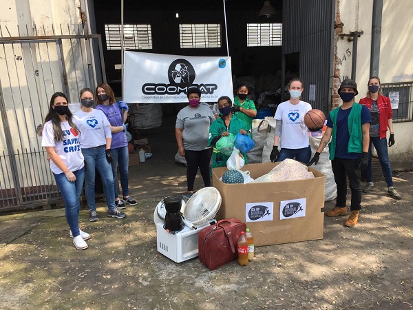 A entrega dos itens foi feita diretamente na sede da Cooperativa de Catadores e Recicladores de Santa Cruz do Sul (Coomcat). Segundo Débora, os resíduos recicláveis serão encaminhados pela Cooperativa para a Indústria de Reciclagem, fazendo a economia circular. Já as roupas, calçados e cobertores em bom estado serão entregues para a Secretaria Municipal de Políticas Públicas de Santa Cruz do Sul, que fará a doação no formato drive-thru para pessoas em vulnerabilidade social. O óleo saturado será encaminhado para produção de biodissel e/ou produção de sabão.