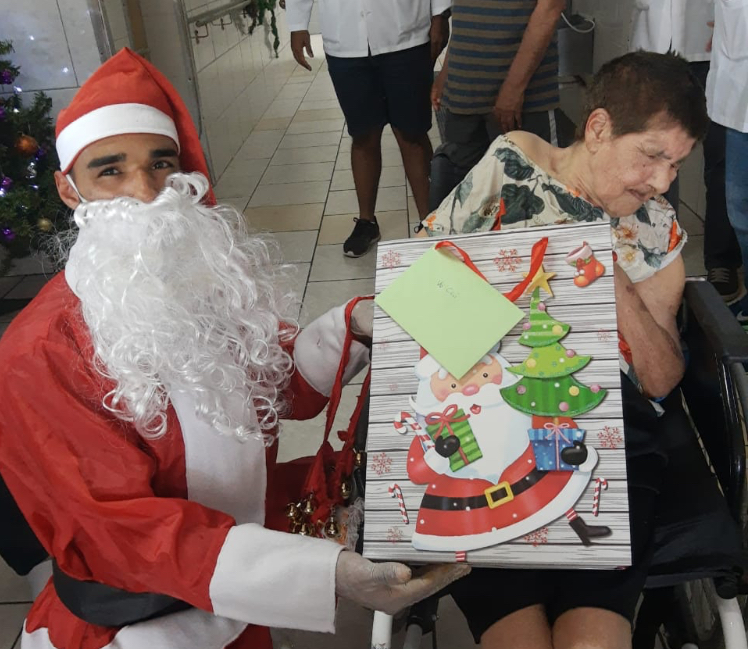 A entrega dos presentes aos residentes da Asan foi realizada na tarde da última segunda-feira, 21, em uma confraternização simbólica entre eles e funcionários. Além da presença do Papai Noel (em que um funcionário se vestiu de Bom Velhinho), os idosos receberam um lanche especial.