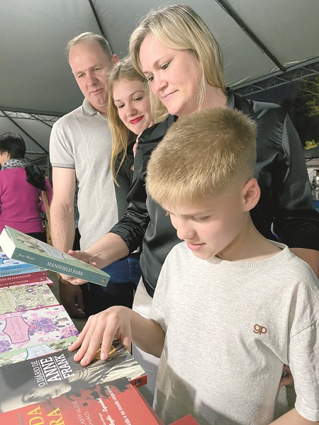 Betina Rabuske gosta de ler e é incentivadora da leitura na família. Desde quando os filhos Geovana, 15 anos, e Matheus, 10, eram pequenos, já estimulava o hábito. Tanto é que hoje, a menina pode ser considerada “devoradora” de livros. No mês passado, por exemplo, comprou uma coleção com seis obras e os leu em alguns dias. Betina, os filhos e o marido Alvício aproveitaram a quinta-feira à noite para prestigiar o evento e garantir alguns livros.