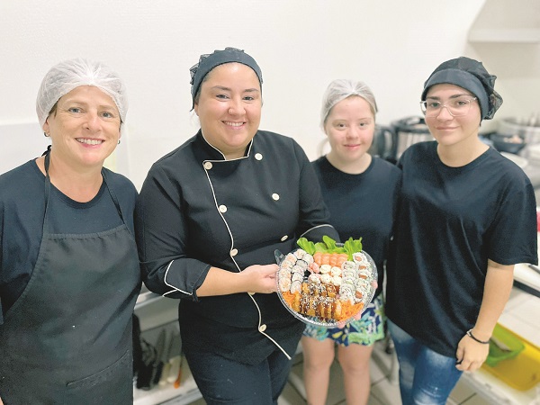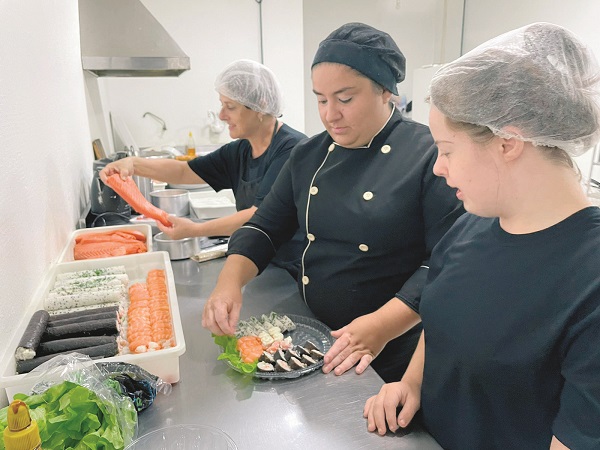 Hoje, além de Juliana, a equipe é formada pela recepcionista Jade Luiza Suanes, pela auxiliar de sushi Gilda Maria de Moura, e pela auxiliar de cozinha Larissa Kannenberg, que é irmã da empresária e possui síndrome de down. “Além de dar espaço para o trabalho de mulheres, atuamos ainda com inclusão social. Minha irmã já esta na equipe há dois anos, como auxiliar de cozinha, e já estou preparando ela para ser uma sushi chef em um futuro próximo.”