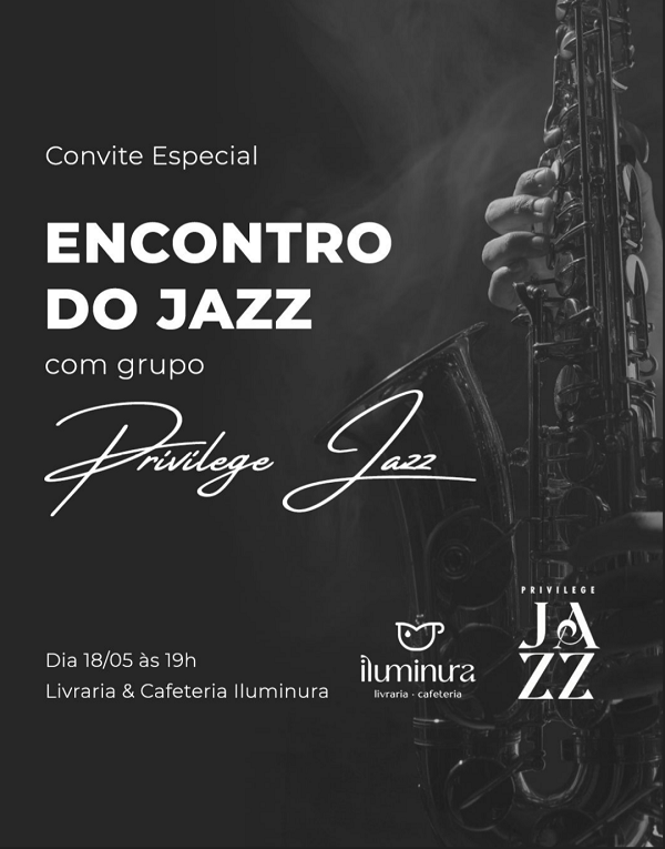 A Livraria & Cafeteria Iluminura, celebrando a música e o Dia Internacional do Jazz, convida para um encontro com o grupo Privilege Jazz, na noite do dia 18, quinta-feira. A ideia é dar um passo inicial na difusão da cultura do gênero musical na cidade, criando um espaço favorável à sua apreciação.