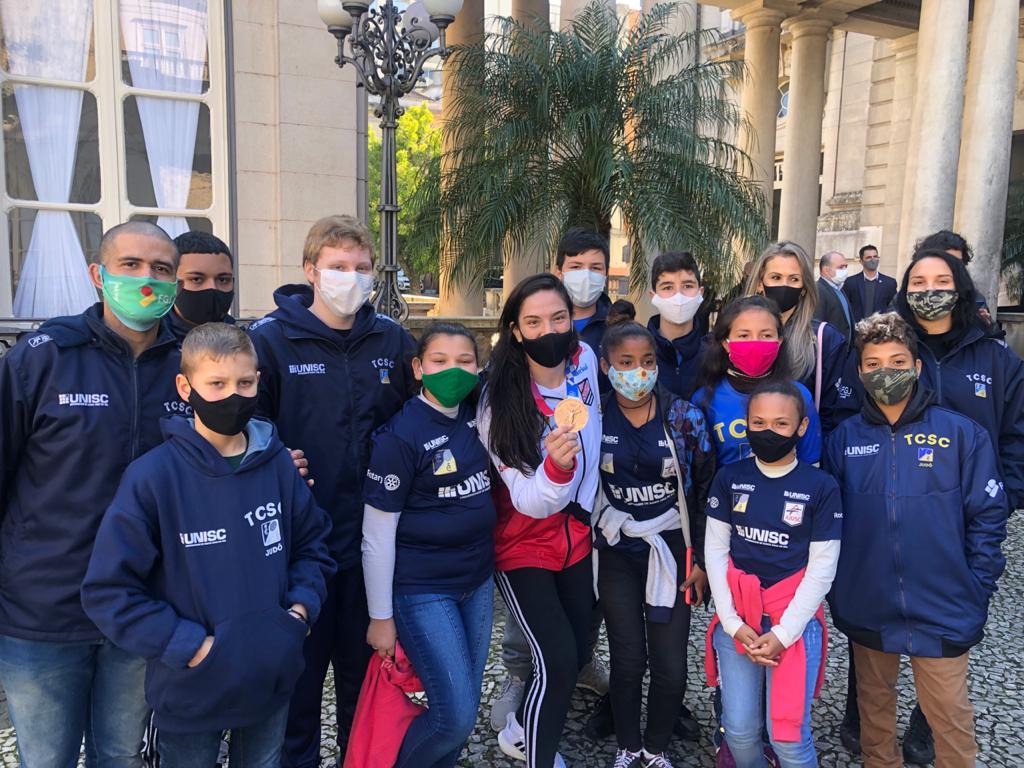 Na última terça feira, 3, de agosto a equipe de judô do Tênis Clube Santa Cruz esteve em Porto Alegre para recepcionar os medalhistas olímpicos do judô, Mayra Aguiar e Daniel Cargnin medalhistas de bronze em Tóquio, que juntamente com mais integrantes da equipe desembarcaram em Porto Alegre e fizeram desfile em carro aberto pela cidade, recebendo a chave da cidade das mãos do prefeito Sebastião Mello.