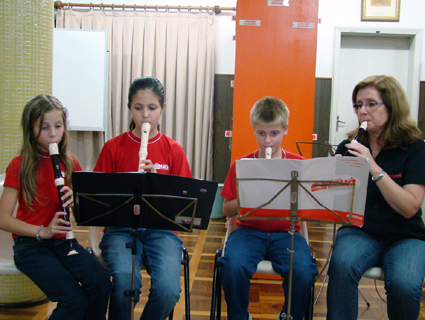 Nos dias 19 e 20 de novembro, os alunos da Escola de Música do Colégio Mauá fizeram uma apresentação para pais e familiares. Com um repertório variado, de maneira individual e em pequenos grupos, os estudantes tiveram a oportunidade de mostrar o que aprenderam durante o ano. Orientados pelos professores Killy Freitas, Miriam Mateus, Gislaine da Luz e Henrique Sulzbacher, a apresentação revelou bons talentos musicais que foram aplaudidos com entusiasmo pela plateia.