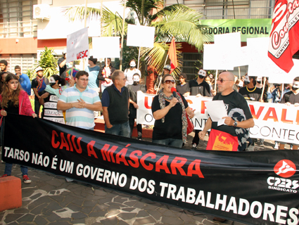 A Praça Getúlio Vargas serviu de palco para o ato público, seguido de passeata até a 6ª Coordenadoria Regional de Educação (6ª CRE) do município.