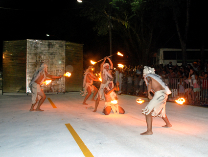 A comissão de frente trouxe os primitivos e o fogo, mostrando que o homem já estava evoluindo a partir disso. “Procuramos mostrar a evolução da figura humana, que tem suas disputas para buscar comida e sobreviver”, declarou Leonardo, integrante da comissão de frente da escola.